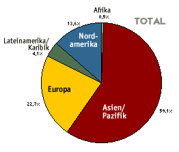 59,1% der Anmeldungen kamen aus der asiatisch-pazifischen Region, gefolgt von europäischen Mitgliedern (22,7%), Nordamerikaner (13,6%). Schwach vertreten sind Mitglieder aus Lateinamerika (4,1%) und Afrika (0,5%).